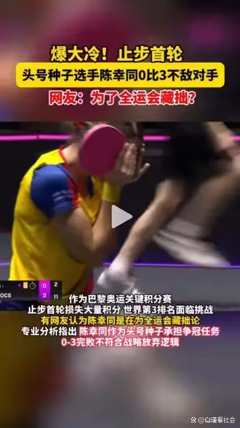 這次比賽是奧運積分關鍵戰,陳幸同輸了要被扣掉大把積分,世界排名都可能保不住,輸球還不如直接退賽更省心,沒必要上場挨揍還丟分。