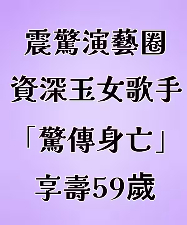 快訊/資深玉女歌手「驚傳身亡」死因曝光!享壽59歲!