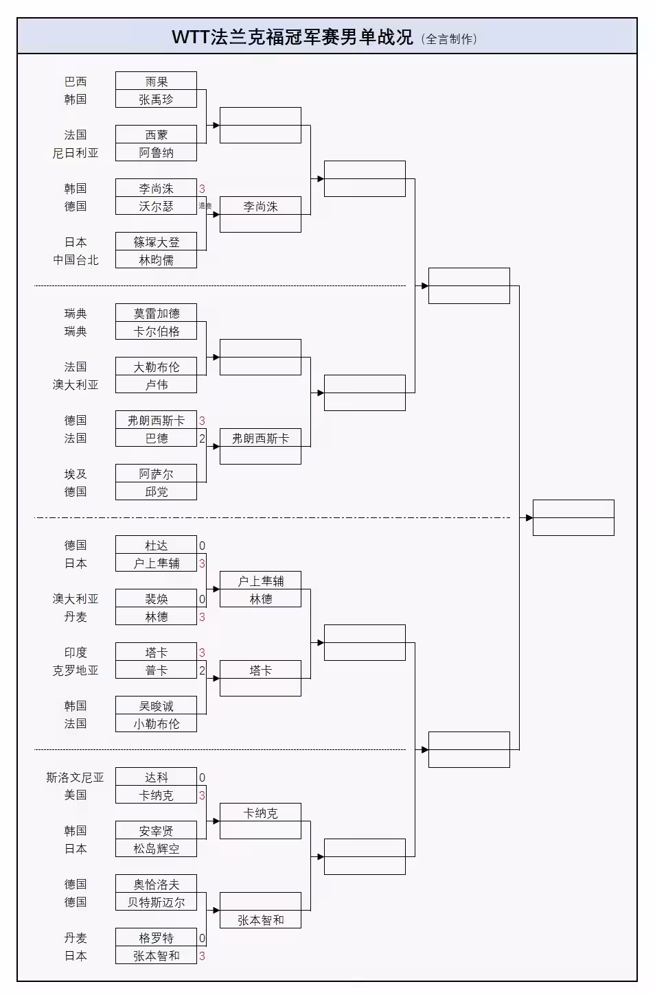 李尚洙(韓國)3-0沃爾瑟(德國,退賽);