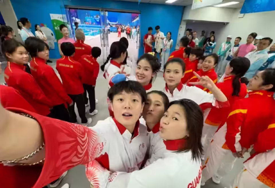 發胖的全紅嬋人氣不減!沒比賽也吸睛,和隊友合照,陳芋汐搶鏡