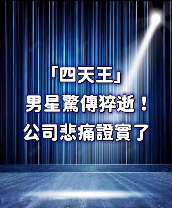 快訊/「四天王」男星驚傳猝逝. 公司悲痛證實了