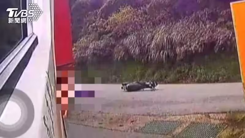 根據行車紀錄器畫面顯示,新北瑞芳事故發生時,貨櫃車正在轉彎,右側一輛機車高速駛來,閃避不及後倒地,騎士卡進車底,機車則噴飛到路邊。警消趕抵現場後,發現騎士受困輪下,救出時已經沒有心跳,雖緊急送醫但仍宣告不治。事故現場可見貨櫃車右後輪底下有一灘血跡,以及騎士損毀的安全帽。警方表示,這起事故發生在6日下午4點多,54歲徐姓貨櫃車駕駛並無酒駕情形,當時從基隆往瑞芳方向行駛,與對向機車騎士相撞,造成騎士死亡。