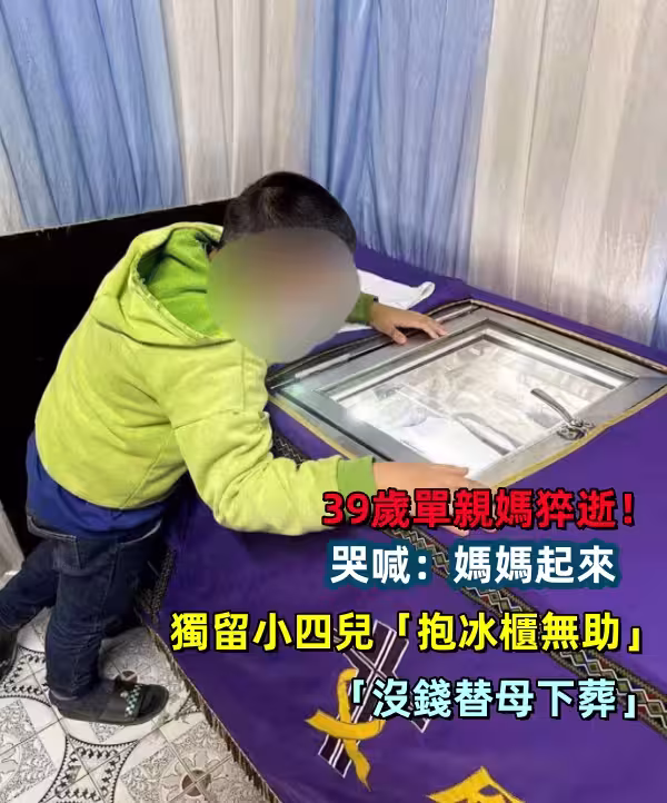 39歲單親媽猝逝!獨留小四兒「抱冰櫃無助」哭喊:媽媽起來,「沒錢替母下葬」