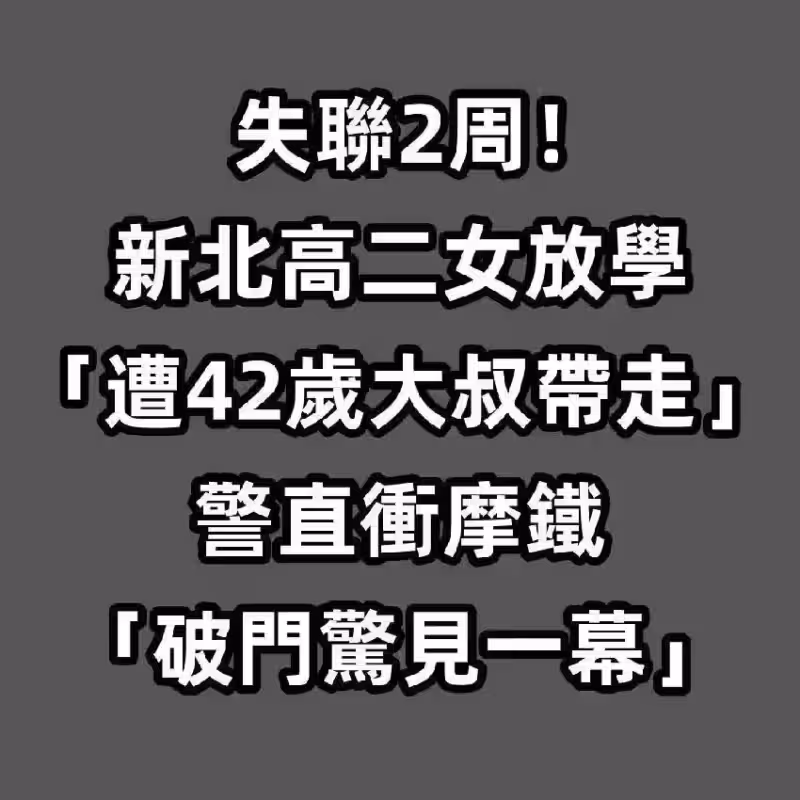 失聯2周 ! 新北高二女放學「遭42歲大叔帶走」 警直衝摩鐵「破門驚見一幕」