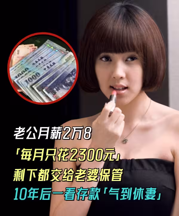 老公月薪2萬8「每月只花2300元」剩下都交給老婆保管,10年後一看存款「氣到休妻」