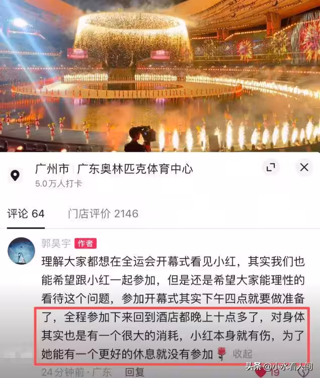 不過全紅嬋的身影出現在了全運會開幕式大屏中,14秒跳水鏡頭,央媽力挺,她依然根正苗紅。