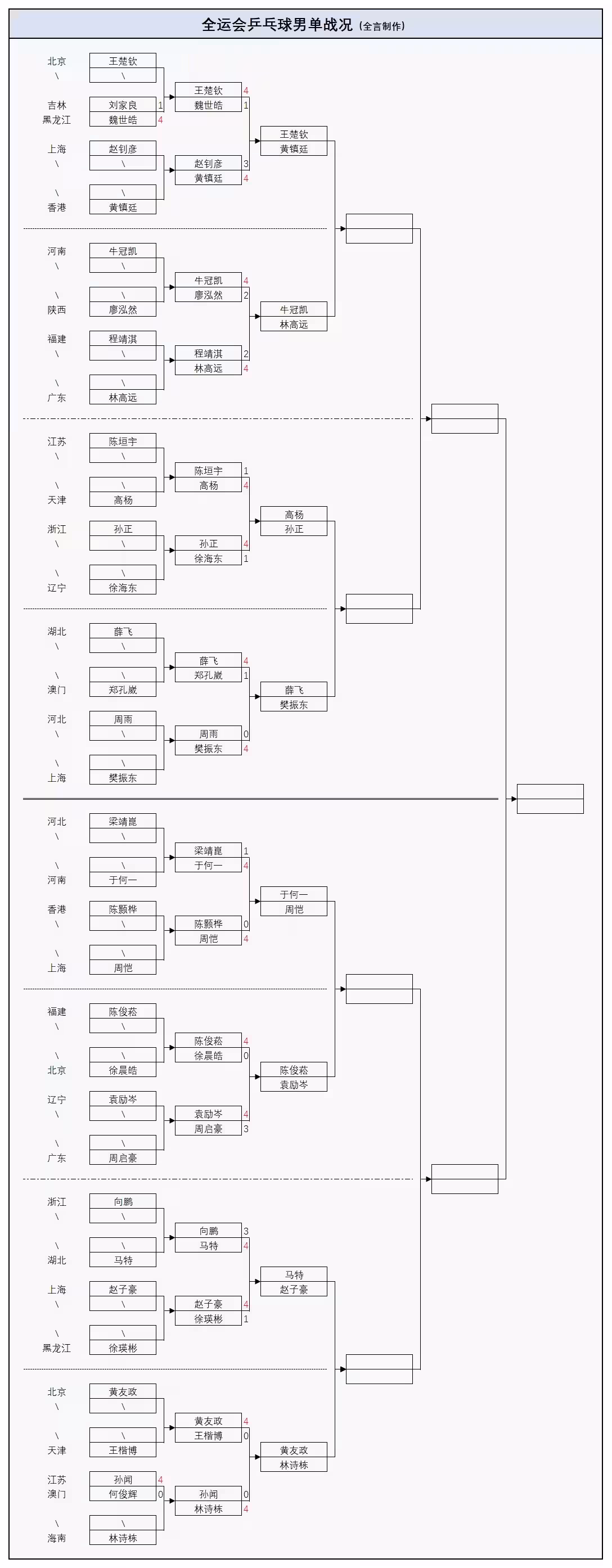 全運會男團4強出爐:世界冠軍2:3出局,樊振東苦戰,王楚欽剃光頭....