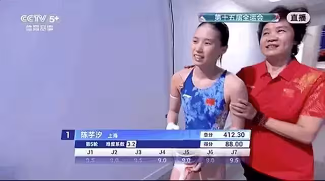 決賽,陳芋汐率先登場,前三輪她發揮出色,排名第一。然而第四跳,陳芋汐出現失誤,被全紅嬋反超。最終,陳芋汐獲得銀牌。