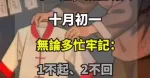 60年一遇,就在明天十月初一,無論多忙,牢記:1不起、2不回、3不坐、4要吃!