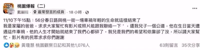 他的人生才開始…奔馳女「未禮讓」撞死23歲男 父淚:希望和依靠都沒了