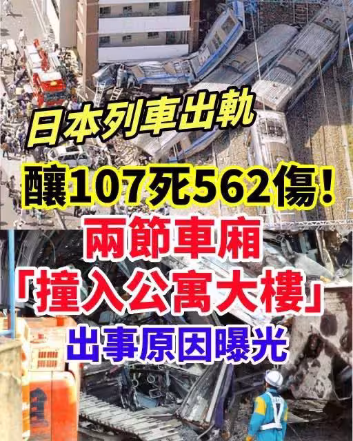 突發/日本列車出軌釀107死562傷!2節車廂「撞入公寓大樓」出事原因曝光「駕駛害怕被罵」