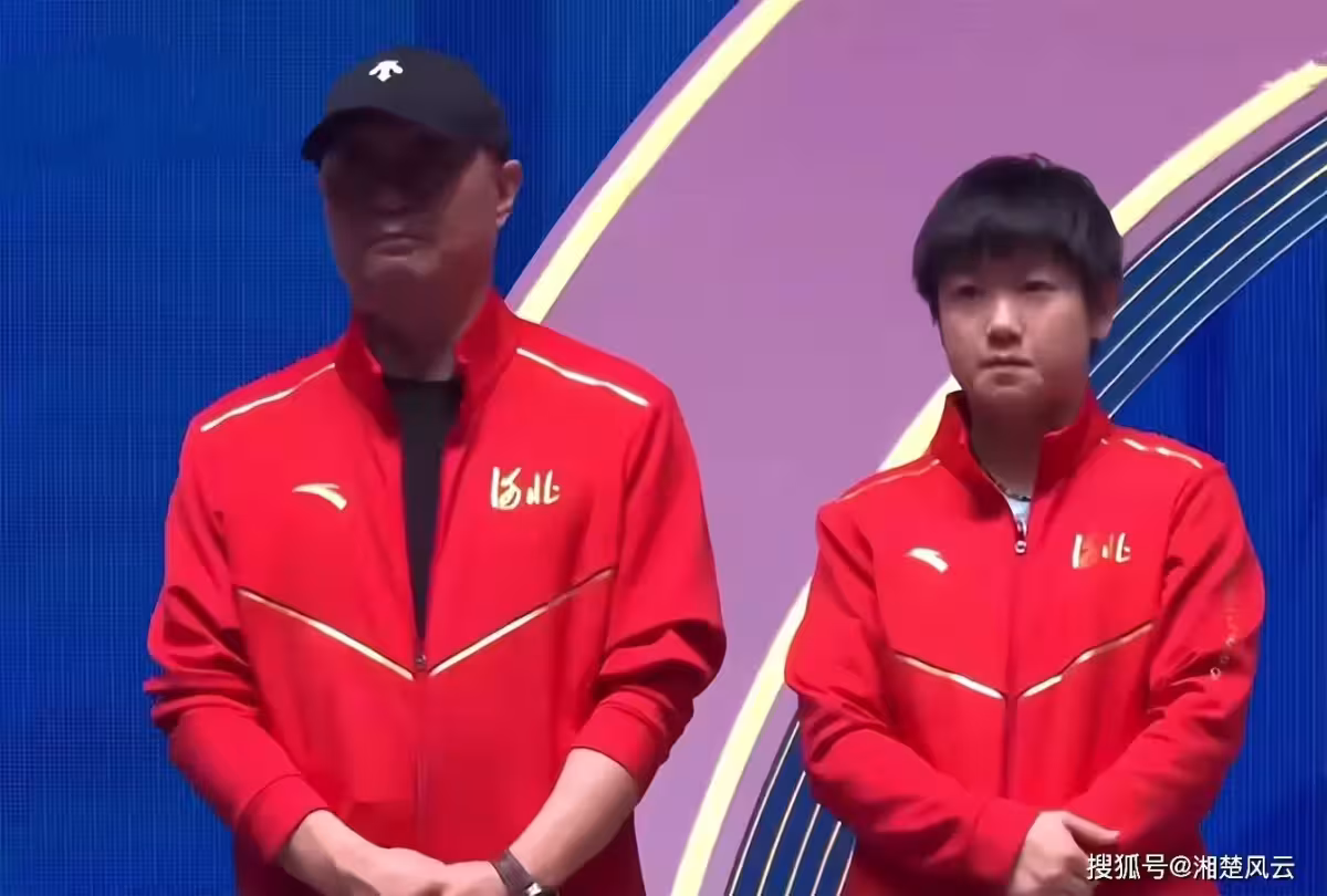 全運會桌球女單頒獎禮:陳夢開心,曼昱笑容燦爛,與教練合影留念