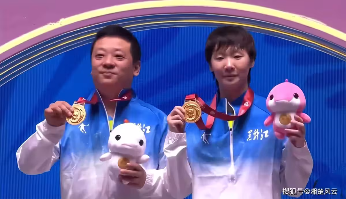 全運會桌球女單頒獎禮:陳夢開心,曼昱笑容燦爛,與教練合影留念