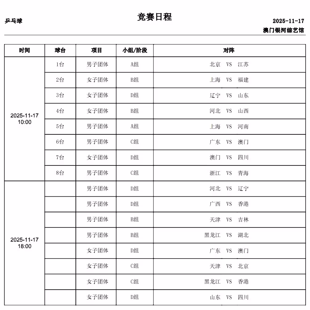 全運會桌球:8項冠軍已出爐!11月17日賽程公布,誕生團體8強