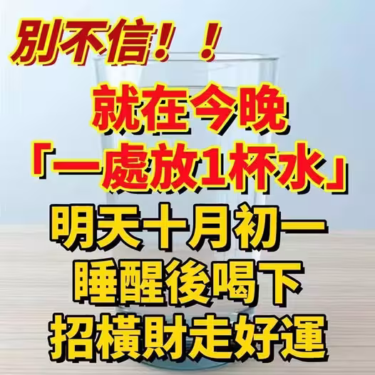 別不信!就在今晚「一處放1杯水」明天「十月初一」睡醒後喝下,招橫財走好運