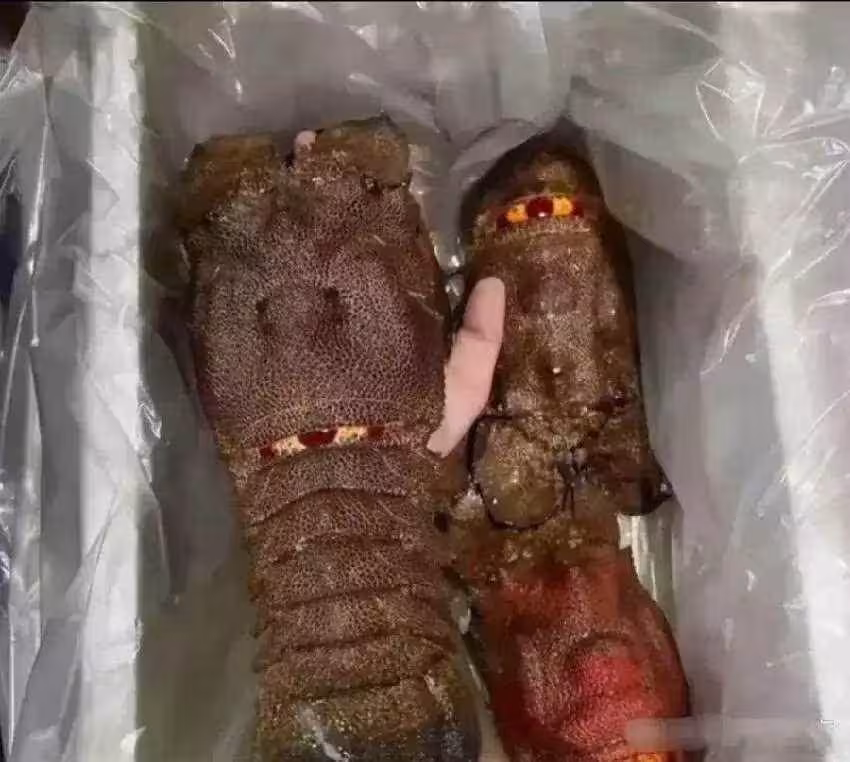 然而,當他將塑料袋打開的一剎那,驚訝寫滿了他的臉龐——兩隻巨大的海鮮出現在他面前。