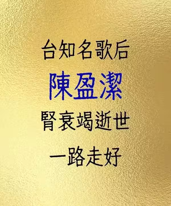台知名歌后陳盈潔 腎衰竭逝世 一路走好。