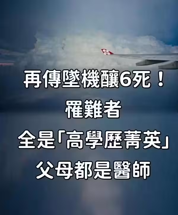 快訊/再傳墜機釀6死!罹難者全是「高學歷菁英」 父母都是醫師。