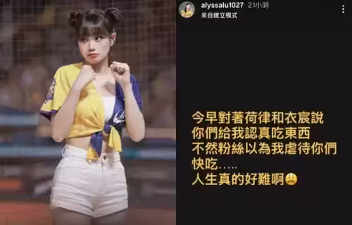 中信兄弟Passion Sisters韓籍啦啦隊成員邊荷律在9月自爆因台灣美食太好吃,制服都變緊,因此宣布要開始控制飲食減肥,沒想到才過1個月後,就透露已瘦到自己理想體重,直接炸出纖細螞蟻腰與馬甲線,但這卻讓粉絲非常擔心她瘦過頭。不料就連經紀人乖姐也看不下去,在19日於Instagram直接對邊荷律等人下「進食令」,要求她們認真吃東西,還崩潰喊:「不然粉絲以為我虐待你們」。
