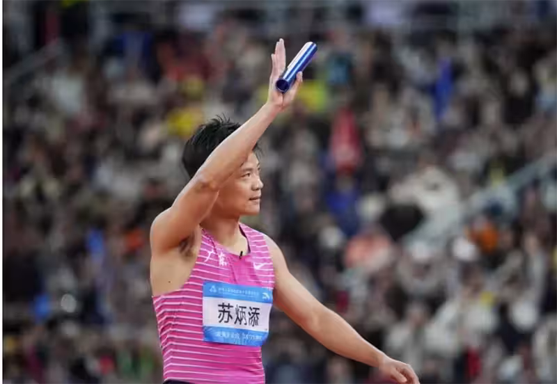 男子4×100米接力謝幕戰,率廣東隊衝擊獎牌,雖未登台但完成新老傳承使命。「亞洲飛人」生涯最後一役引發全網致敬,強調「中國短跑未來靠年輕人」。