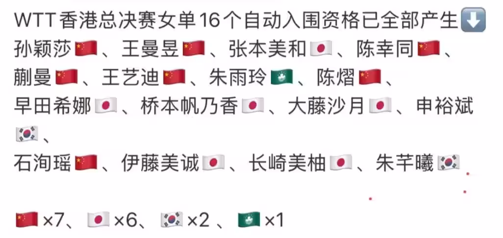 WTT香港總決賽名單出爐,國乒11人入圍單打,王楚欽/孫穎莎有望外卡出戰!