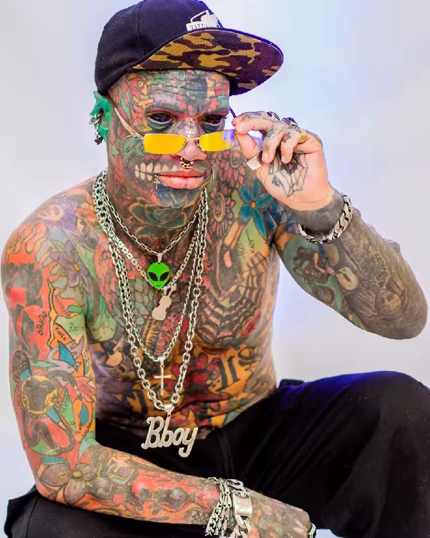 滿多人說他怪異不正常,但其實他以前是一位嘻哈舞蹈老師,現在則是藝術模特兼演員,從15歲開始刺了第一個紋身後就瘋狂迷上,他也曝光以前的照片,簡直跟現在判若兩人,當時的他真的非常帥氣~