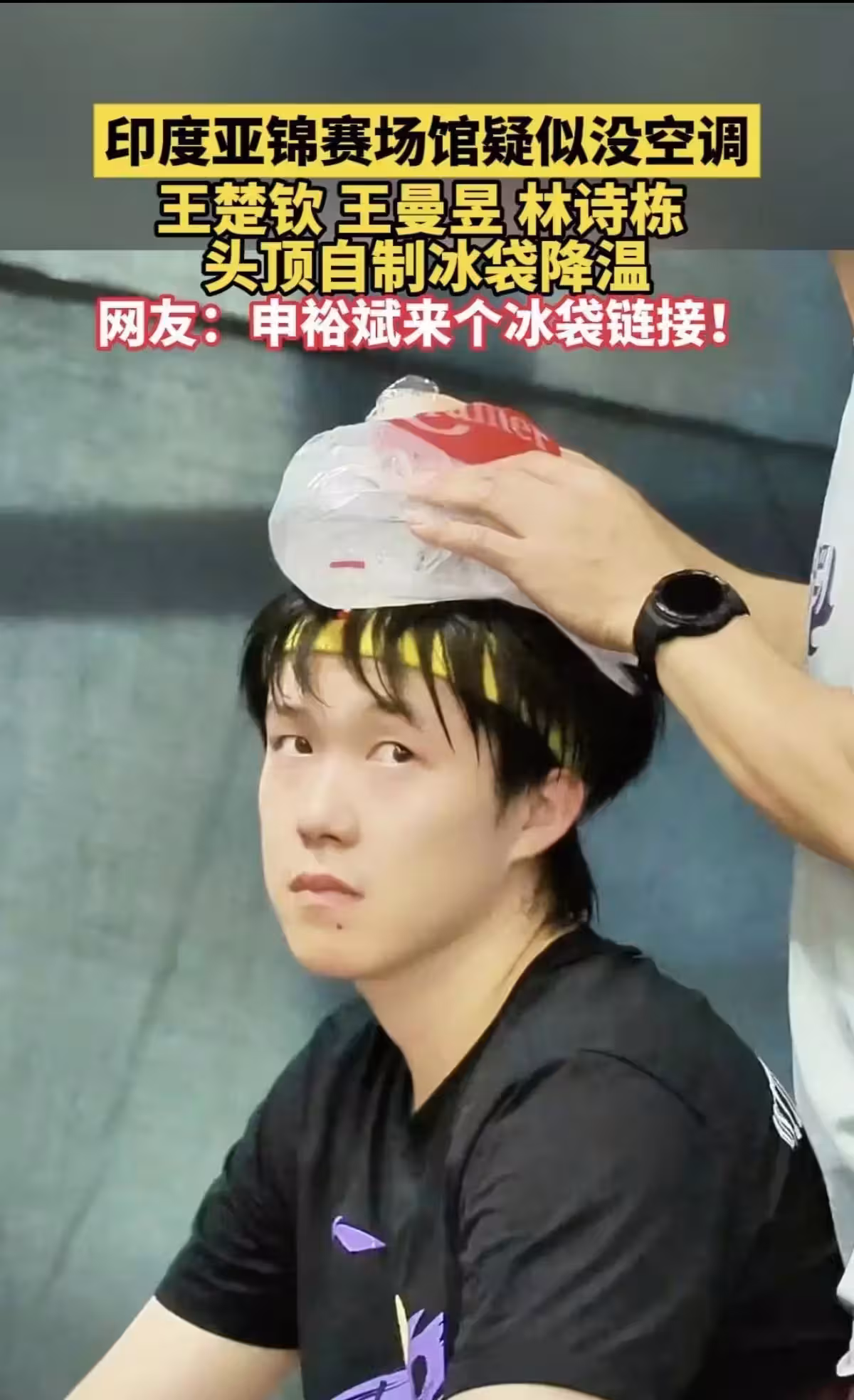 比賽的環境也非常艱苦。現場的溫度高達34℃,濕度70%,讓場館裡的空氣悶得像蒸籠一樣。隊員們練了幾分鐘就滿身是汗,孫穎莎的衣服濕透了,簡直像剛剛游過一場大水。為了降溫,王楚欽和王曼昱只能將冰袋放在頭頂,但冰塊融化後順著脖子流下來,他們連擦都懶得擦了。