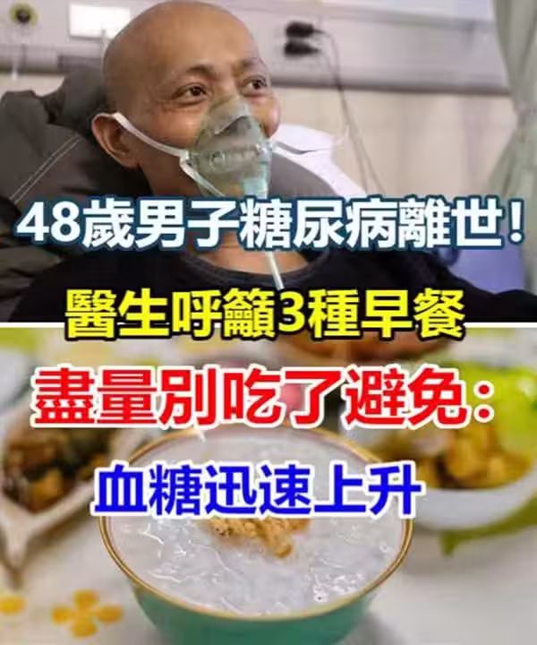 48歲男子糖尿病離世!醫生呼籲「三種早餐」儘量別吃了 避免:血糖迅速上升!