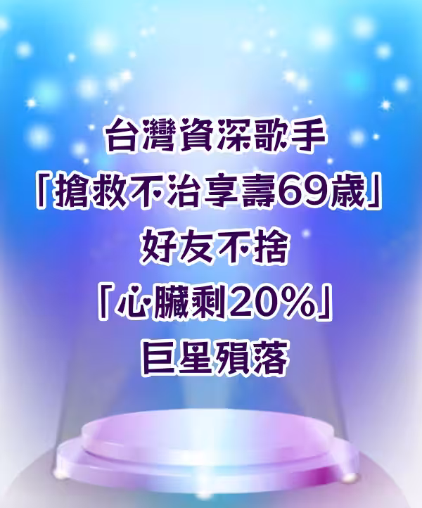 台灣資深歌手「搶救不治享壽69歲」 好友不舍「心臟剩20%」巨星殞落。