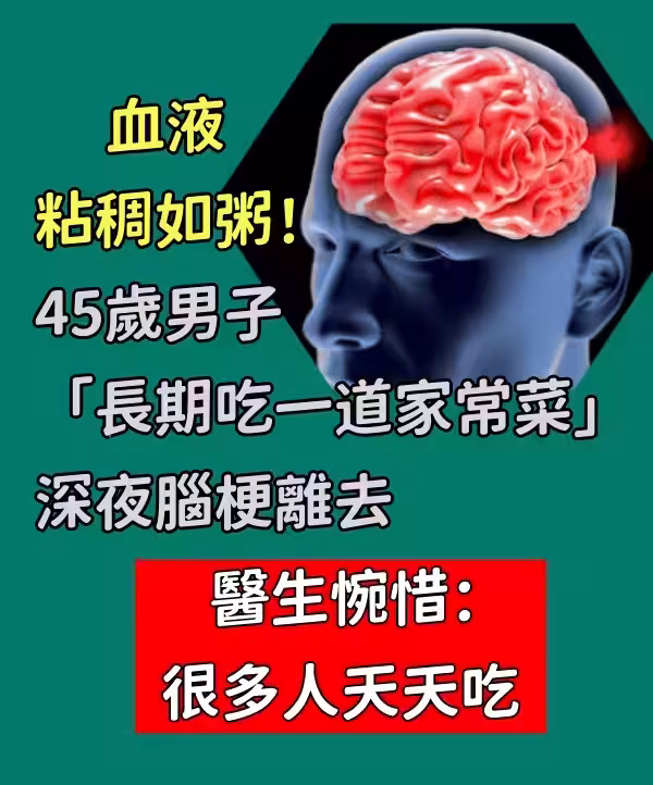 血液粘稠如粥!!45歲男子「長期吃一道家常菜」 深夜腦梗離去「醫生惋惜」:很多人天天吃