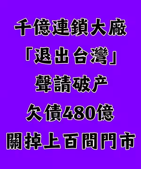 快訊 / 千億連鎖大廠「退出台灣」聲請破產!欠債480億「關掉上百間門市」
