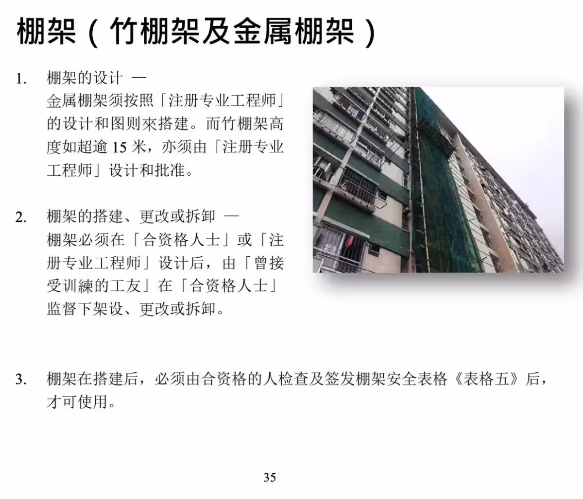 ▲香港《樓宇保養及維修工程安全手冊》(部分)