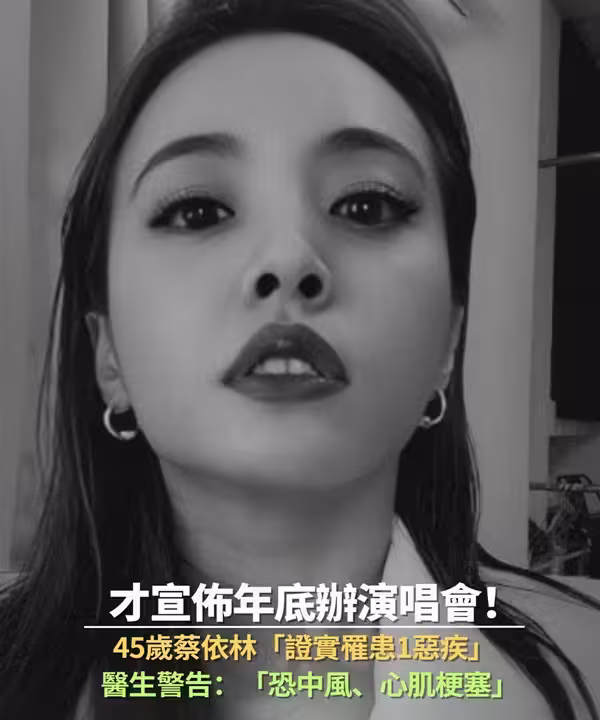 才宣布年底辦演唱會!45歲蔡依林「證實罹患一惡疾」醫生警告:「恐中風、心肌梗塞」