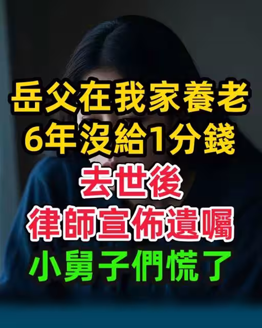 岳父在我家養老6年了 沒給過1分錢,去世後律師宣布遺囑,小舅子們慌了