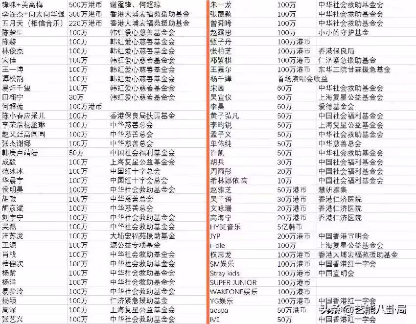 越來越多的演藝界人士,加入了捐款援助的行列,各基金會隨之公布了最新捐贈名單。