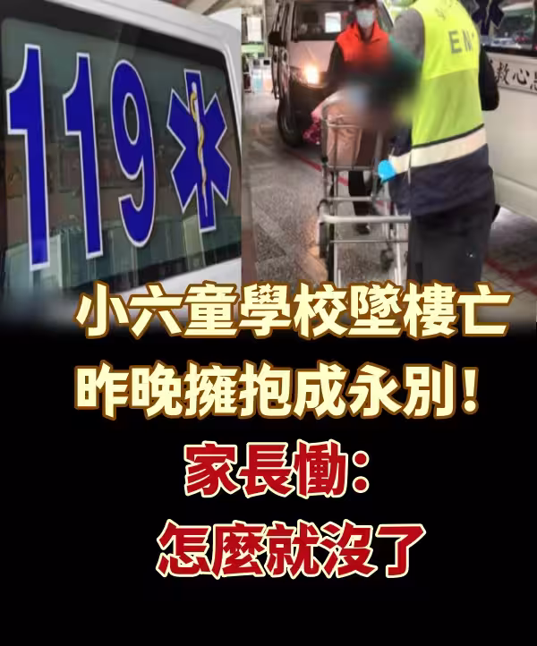 小六童學校墜樓亡,昨晚擁抱成永別!家長慟:怎麼就沒了。