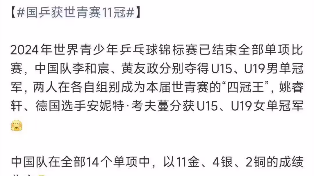 國乒世青賽罕見收穫6金,男隊創歷史低谷引發關注