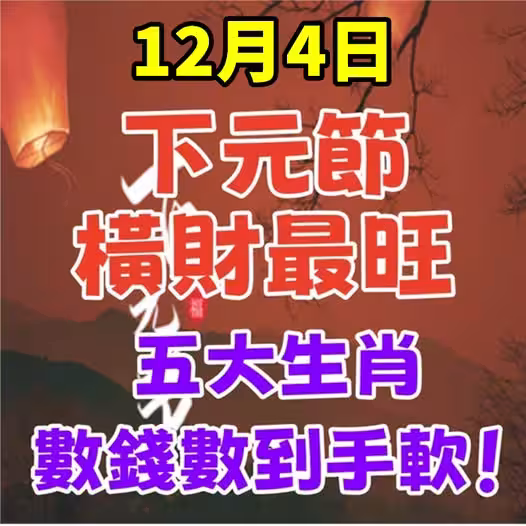 12月4日,下元節橫財最旺,五大生肖數錢數到手軟!