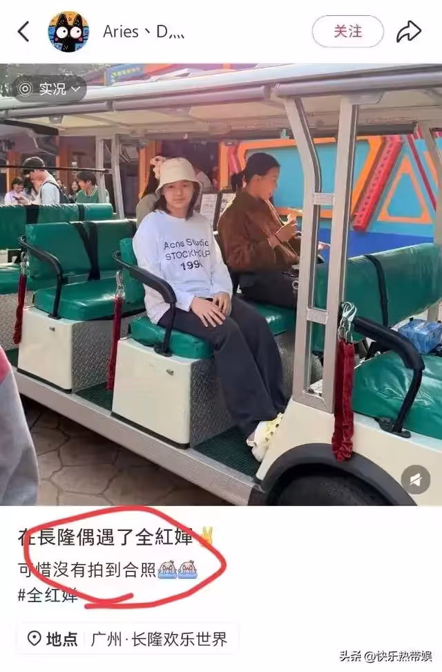 12月4日,有網友在廣州長隆歡樂世界偶遇跳水明星全紅嬋,小姑娘一身休閒打扮,白色衛衣搭配闊腿褲,還有戴著一款漁夫帽,胡規矩矩的存在觀光車裡,看著遠處別人遊玩的樣子。