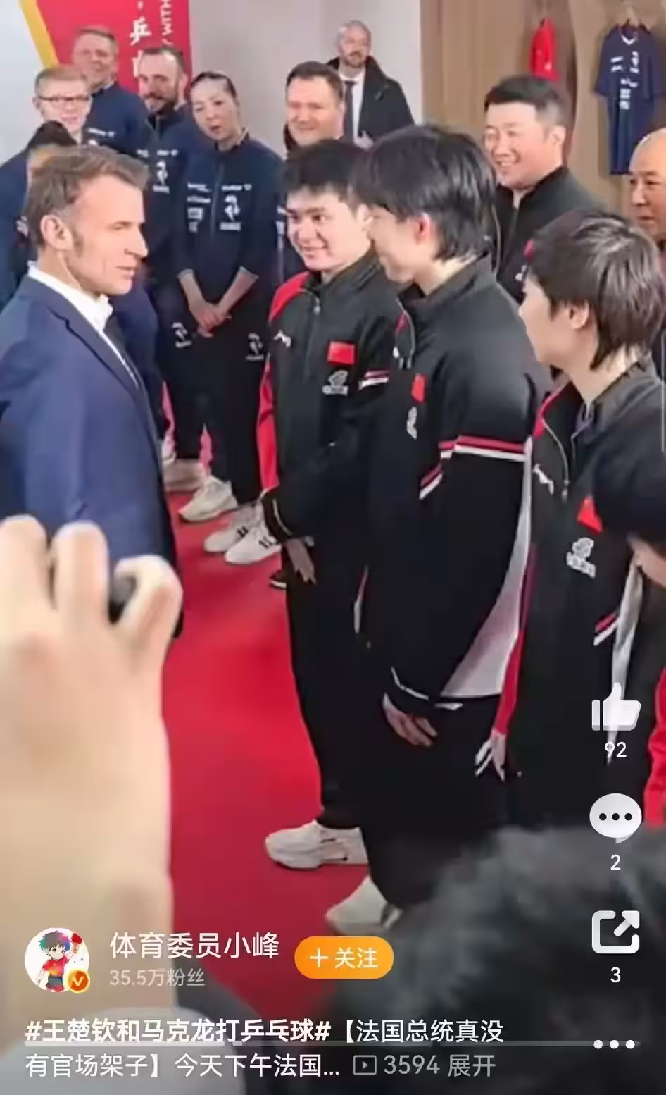 馬克龍約戰國乒!「莎頭」組合溫柔喂球,3分半互動超投入