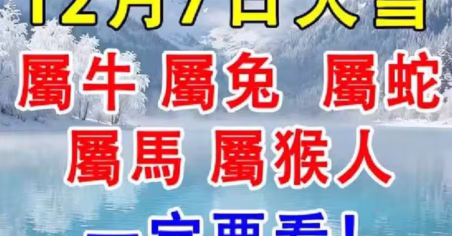 12月7日大雪「屬牛 屬兔 屬蛇 屬馬 屬猴人」一定要看