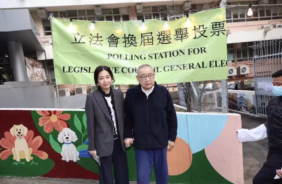 74歲劉鑾雄坐輪椅現身,需甘比攙扶起身,保鏢助理共五人相伴在旁
