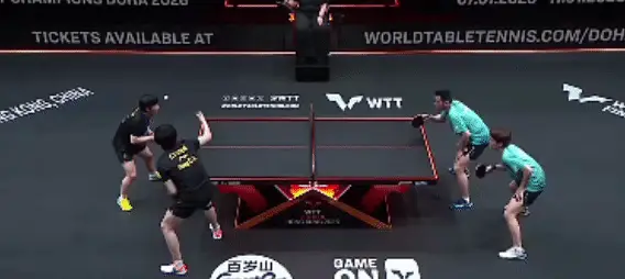 來到局中,中國香港組合努力拉開分差,但是莎頭組合緊緊追趕。孫穎莎的擰拉和側旋,王楚欽的擺短和策應,配合十分默契,比分來到7-7!