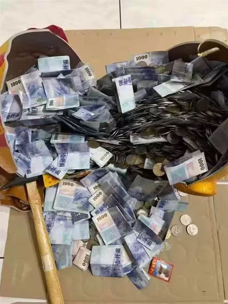 存了一整年!他年末打破豬公看到「一片藍藍紙鈔海」~算出總額後嚇爛:太扯了