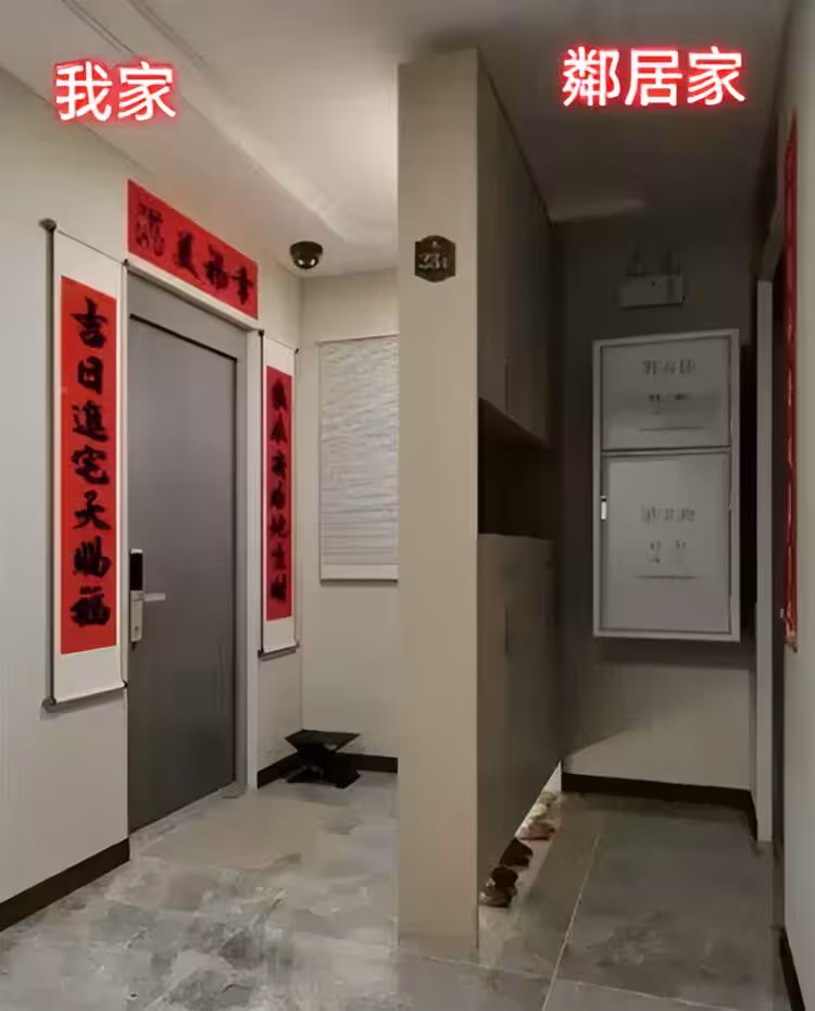 這道突然出現的牆體不僅改變了樓道格局,更引發了網友的激烈討論:支持派​​認為鄰居行為合規:​​「隔離牆在他們那一半,沒有占用你的區域」​​,且指出​​「公攤面積也算錢的」​​,推測對方可能因​​「鞋放門口侵犯隱私、不衛生」​​而採取合理措施 • ​​反制派​​提出巧妙對策:​​「紅線位置裝個門,利用他家牆體多得一個玄關」​​,形成「合法反擊」 • ​​務實派​​擔憂生活便利性:​​「搬大件東西怎麼辦?」​​ 點出實際隱患​​中立派​​則強調前因後果:​​「你安裝監控且鞋放門口,恐怕鄰居擔心侵犯隱私了,人家這樣做也是無可厚非」​​可能是導火索 一堵牆為何能引發對物權邊界、鄰里默契與公共規則的全面討論?