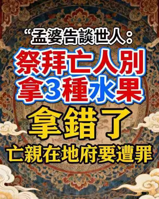 這不,她又託夢給一位老婆婆,要她轉告世人:祭拜亡人時,千萬別拿這三種水果,否則親人非但不能收到孝心,反要在地府受罰。