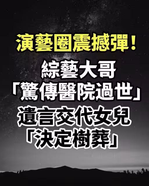 演藝圈震撼彈!綜藝大哥「驚傳醫院過世」...遺言交代女兒「決定樹葬」