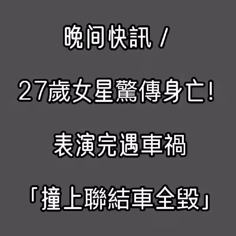 晚間快訊/27歲女星驚傳身亡!表演完遇車禍 「撞上聯結車全毀」...