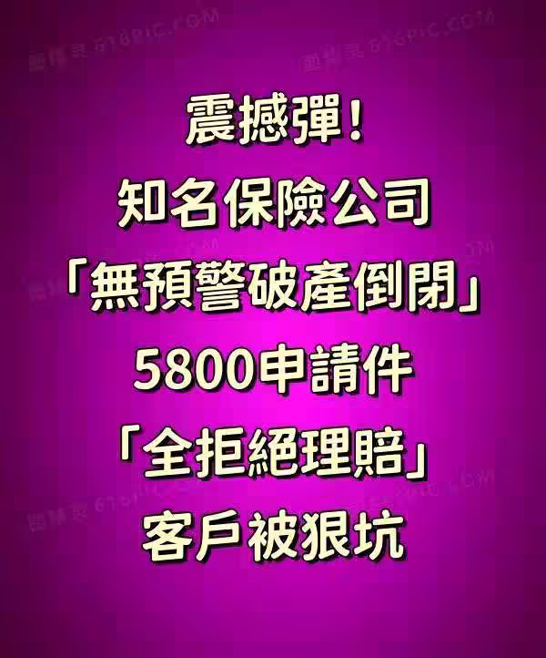 震撼彈!!! 知名保險公司「無預警破產倒閉」5800申請件「全拒絕理賠」 客戶被狠坑