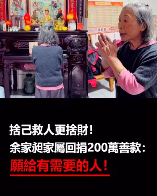 捨己救人更舍財! 余家昶家屬回捐200萬善款:願給有需要的人!